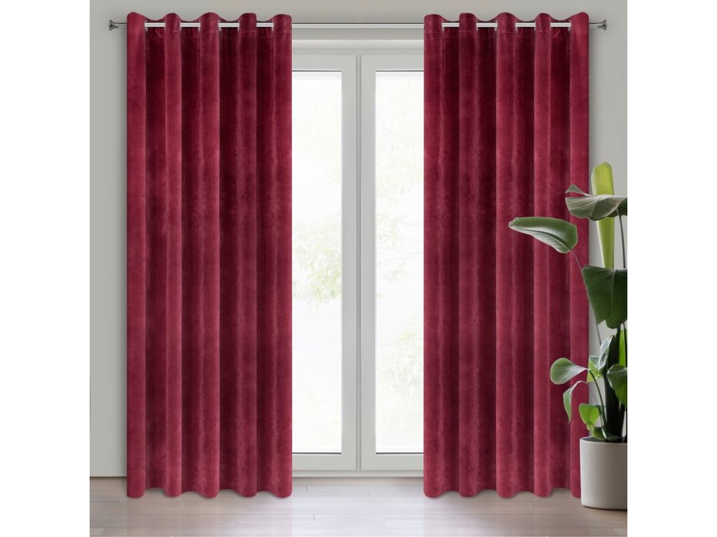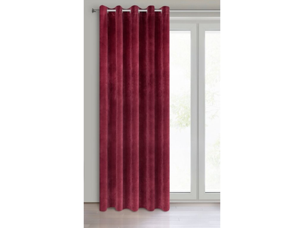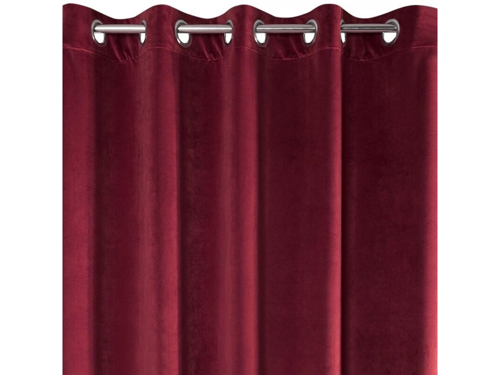 Gładka, jednokolorowa zasłona z miękkiego welwetu o charakterystycznym dla aksamitu połysku. Aż 10 szerokich przelotek umożliwia proste upięcie dekoracji okna. szerokość: 140 cm, długość: 250 cm, kolor: VÍNOVÝ, Gramatura: 290 GSM, Skład: 100% poliesterDoplňkové parametry