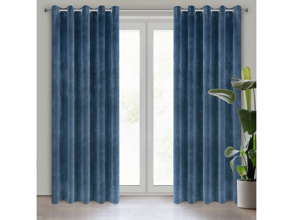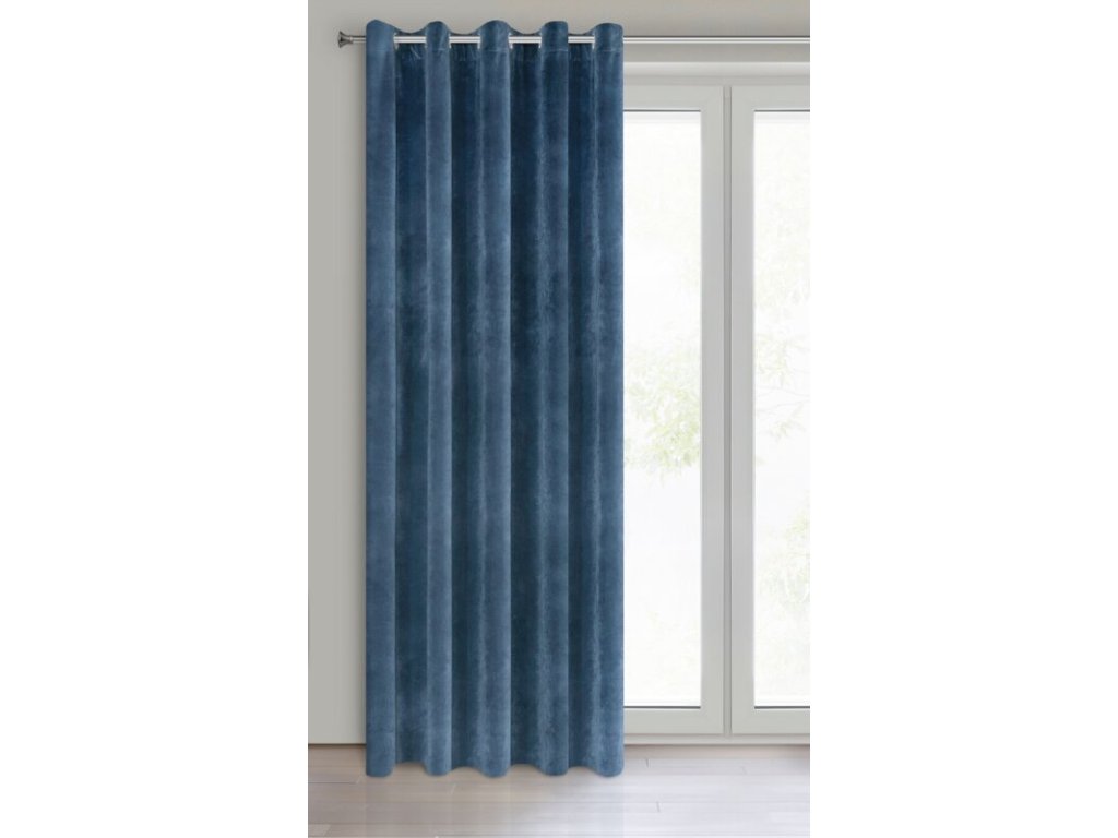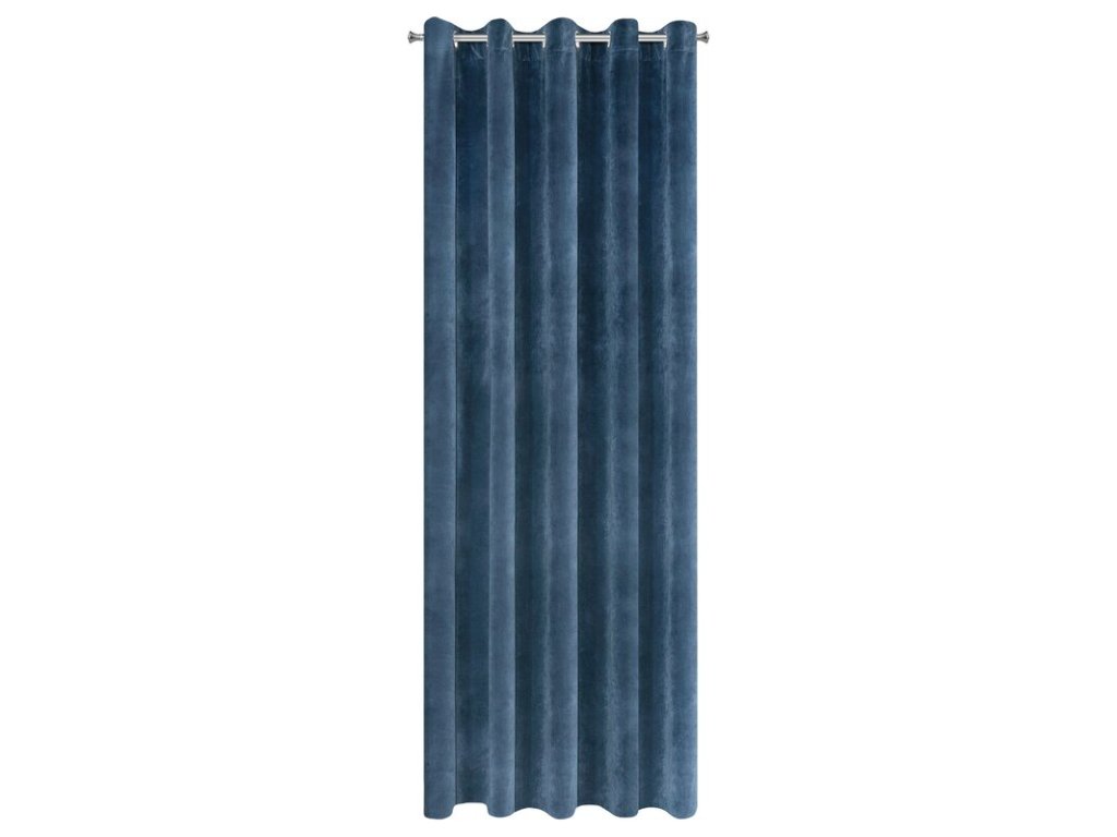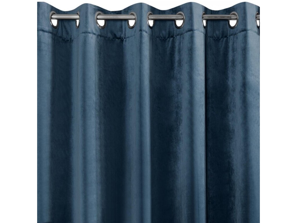 Gładka, jednokolorowa zasłona z miękkiego welwetu o charakterystycznym dla aksamitu połysku. Aż 10 szerokich przelotek umożliwia proste upięcie dekoracji okna. szerokość: 140 cm, długość: 250 cm, kolor: NÁMOŘNICKÁ MODRÁ, Gramatura: 290 GSM, Skład: 100% poliesterDoplňkové parametry