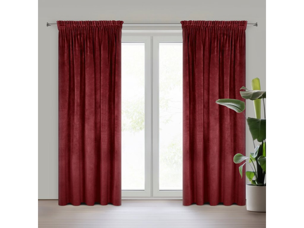 Gładka, jednokolorowa zasłona z miękkiego welwetu o charakterystycznym dla aksamitu połysku. Taśma marszcząca zawiera tunel do upięć na karniszu drążkowym. szerokość: 140 cm, długość: 270 cm, kolor: TMAVĚ VÍNOVÝ, Gramatura: 290 GSM, Skład: 100% poliesterDoplňkové parametry