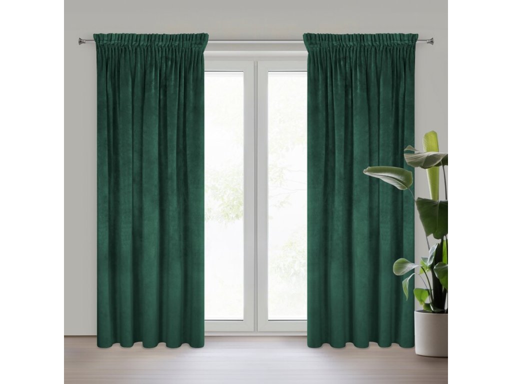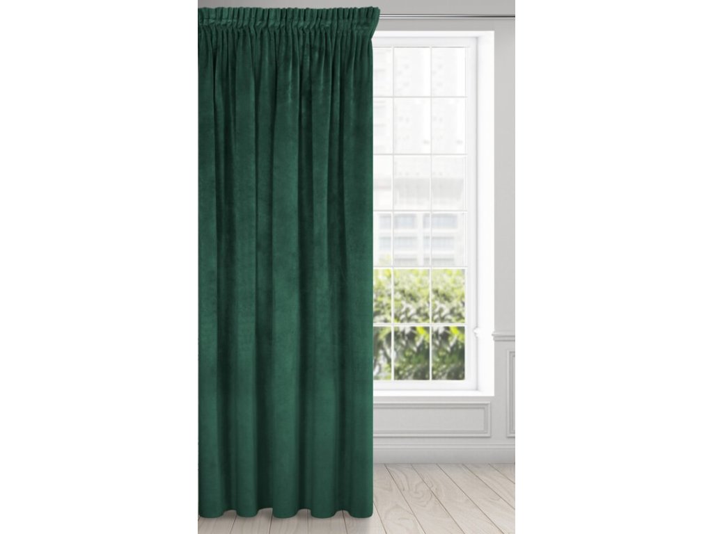 Gładka, jednokolorowa zasłona z miękkiego welwetu o charakterystycznym dla aksamitu połysku. Taśma marszcząca zawiera tunel do upięć na karniszu drążkowym. szerokość: 140 cm, długość: 300 cm, kolor: TMAVĚ ZELENÝ, Gramatura: 290 GSM, Skład: 100% poliesterDoplňkové parametry