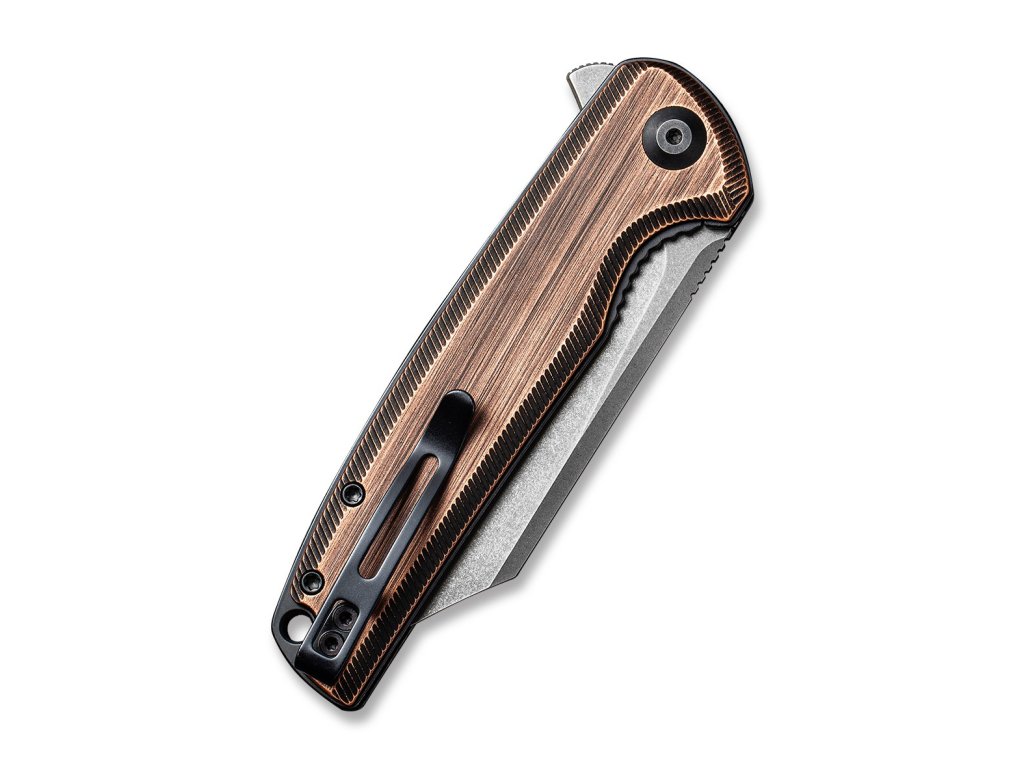 Nůž CIVIVI 909 Brigand je nůž, na který se můžete vždy spolehnout. Reverzní čepel typu tanto má velmi ostrou špičku. Ergonomická rukojeť s měděným povrchem, které zajistí velmi pevné uchopení. Cena tohoto nože rozhodně nedosahuje jeho kvalit !