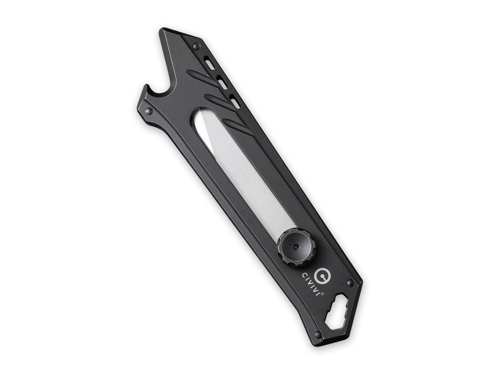 Nůž CIVIVI C2007D Mandate je vysouvací nůž s výměnnou čepelí, který je též otvírák na láhve a šestihranný klíč na matice a šrouby. Tento nůž je dodáván se 3 břity – 2x nerez 9Cr18MoV a jeden damašek. Jedná se nejspíš o nejhezčí multifunkční nástroj, který jste kdy viděli. Rukojeť má správnou velikost pro ergonomické použití a manipulace se zatahovacím zámkem je velmi jednoduchá. Hrot využijete k rozříznutí balíčku, ale také můžete využít plné výsuvné délky 53,9 mm. Mandát je velmi cool nástroj, bez kterého už nebudete chtít být !