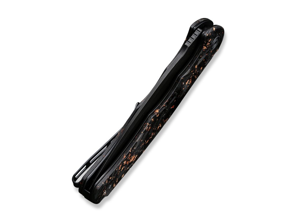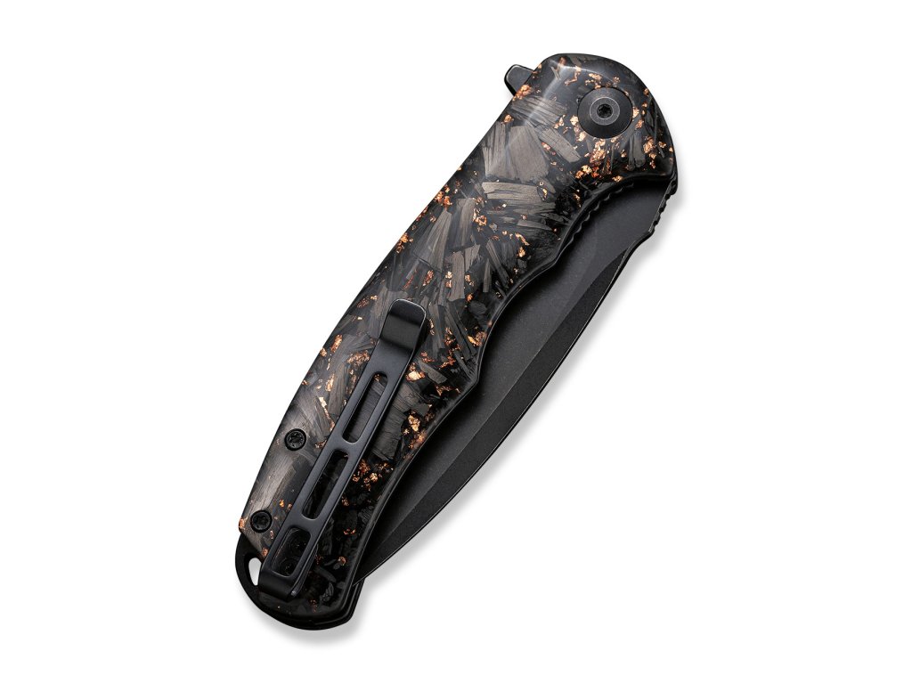 Rukojeť je z drcených uhlíkových vláken a mědi v pryskyřici na celonerezových příložkách s oboustranným hlubokým kapesním klipem tip-up. Je ergonomický, rychlý a funkční - navržený tak, aby oslovil masy, a to se podle nás CIVIVI rozhodně povedlo.