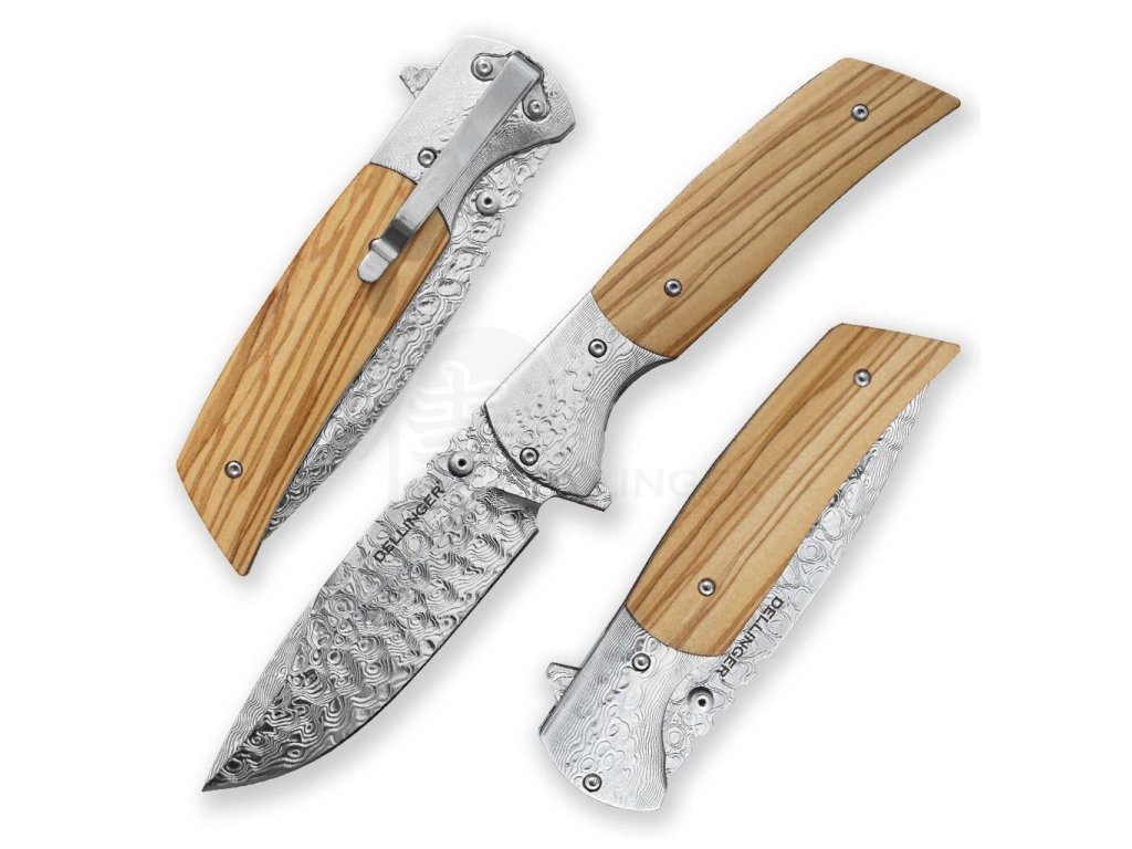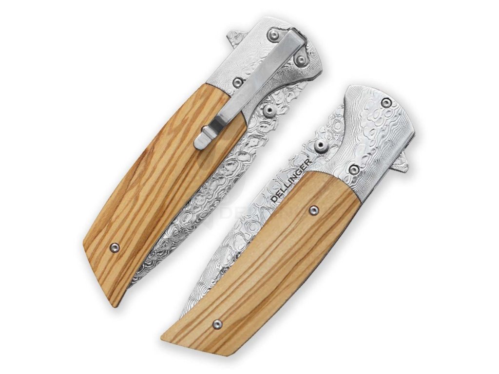Zavírací nůž Dellinger Nomad Olive zaujme každého, kdo oceňuje propojení precizního zpracování, přírodní estetiky a originálního designu. Čepel z damaškové oceli s výraznou kresbou přechází v detailně gravírované bolstry, které působí luxusně a technicky zároveň. Díky vysoce kontrastnímu damašku je každý kus naprosto jedinečný.