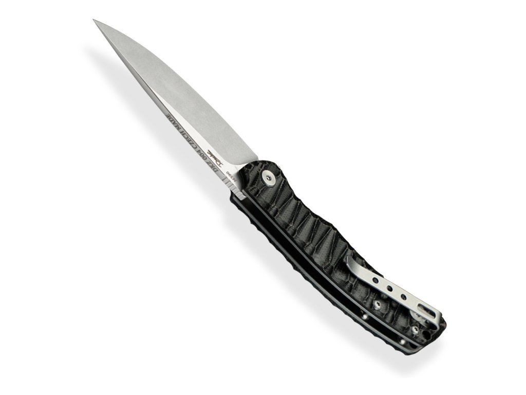Exklusivní zavírací lovecký nůž, který byl vyroben českým nožířem Radimem Dachsem. Pekelně ostrá čepel z německé práškové oceli Bohler M390 Microclean je uložena v kuličkových ložiscích, které umožní bleskovou reakci a otevření nože. Tato vyjímečná ocel má dlouhotrvající ostrost při tvrdosti R62 +/- 1 Rockwella.