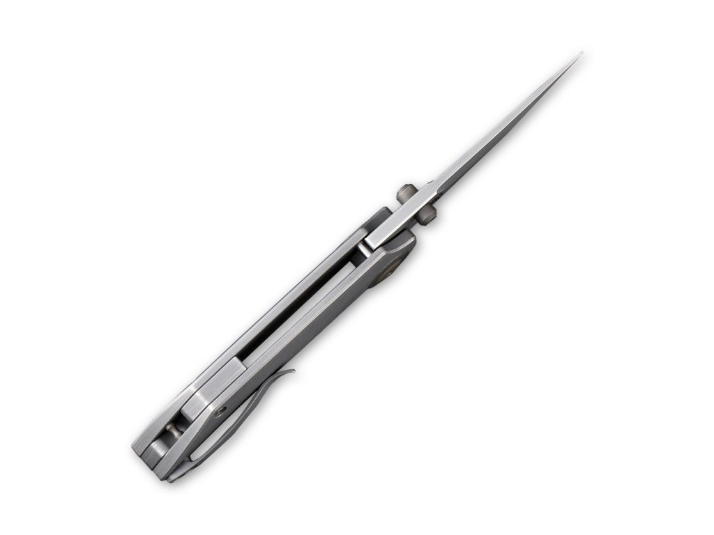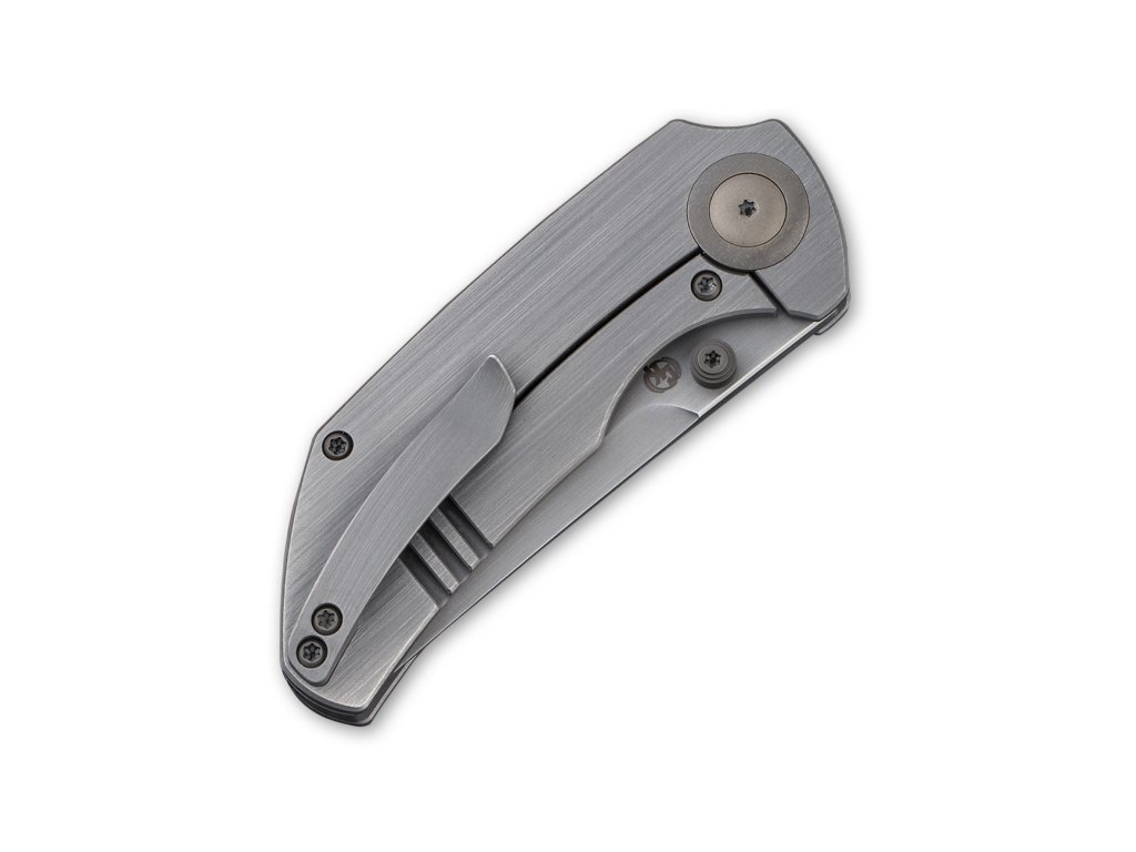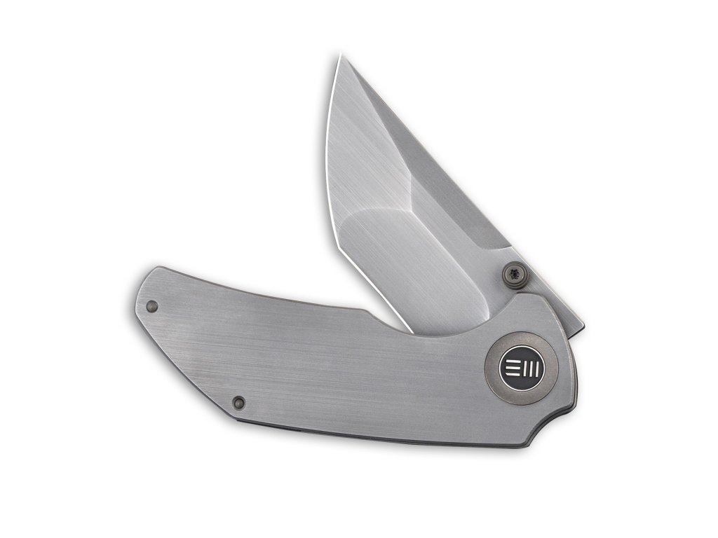 nůž WEKNIFE Thug je elegantní kapesní nůž s čepelí tvaru tanto, který navrhl Matthew Christensen. Nůž má titanovou rukojeť doplněnou materiálem G10. Ohromující kombinace, která zaujme na první pohled. Čepel o délce 6,84 cm z exkluzivní nerezové oceli CPM 20CV dosahuje vysokou tvrdost okolo 60 HRC. Vysoká houževnatost a odolnost vůči opotřebení je samozřejmostí. Čepel typu „Sheepsfoot“ má povrchovou úpravu STONEWASHED. Thug je dokonalým nožem pro moderního gentlemana nebo ženu hledající stylový kapesní nůž.